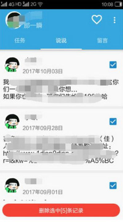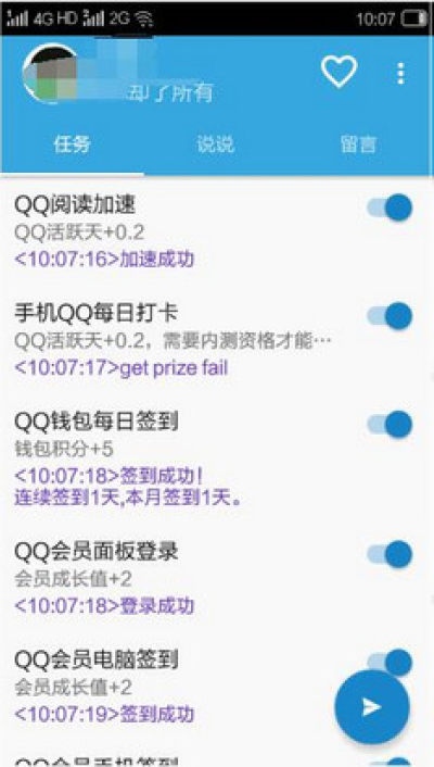 QQTask是一款支持QQ空间一键签到,一键删除全部QQ空间说说、QQ空间留言的手机软件,关于批量删除说说和留言失败的问题,请不要将时间间隔设置的过小,否则会删除失败。