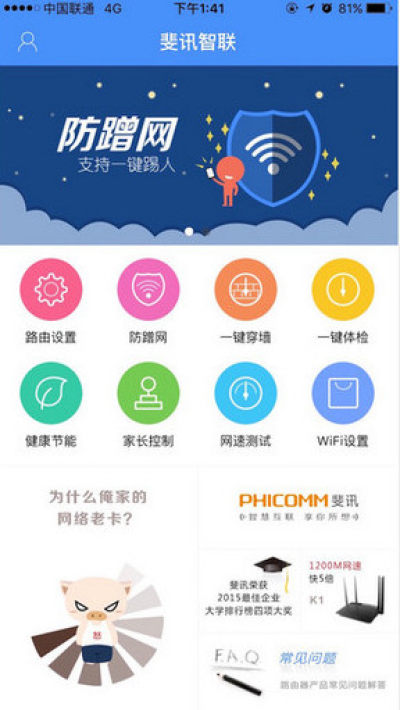 斐讯路由器控制是一款通过手机就能控制你的路由器设置,APP目前支持路由器产品的范围为斐讯FIR302C,K1, K2,K3等全部K系列产品。