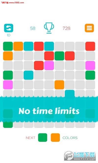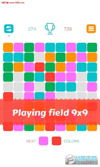《81!》是一款休闲娱乐游戏。在这个9X9格子的正方形场景中,存在着多种颜色随机分布的色块,你要做的就是把接下来出现的每个色块放到合适的位置。只要达到三消即可清除对应色块。