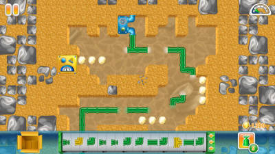 游戏下方的传送带会随机出现各种类型的水管,你需要根据实际情况来自由发挥,将水管连接的滴水不漏。游戏右下角的提示能够帮助你连接一格你没有的水管,而左下角的箱子能够帮你丢掉一格拿起来但是放不回去的水管。游戏的场景中有许多的金币,能够为你带来额外分数,需要将水管连接到上面才能获得。