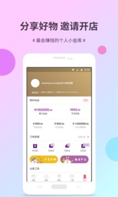 2.轻松经营:无需打款、囤货、自己发货,分享商品被购买即可获得高额收益。
