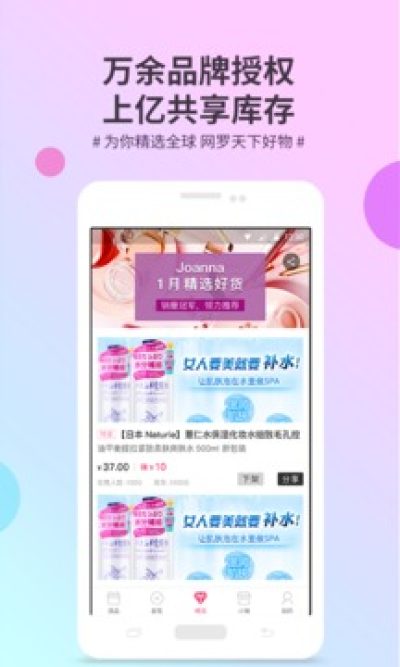 3.共享好货:中央供应链系统,整合全球优质货源,万余品牌授权,近亿共享库存。