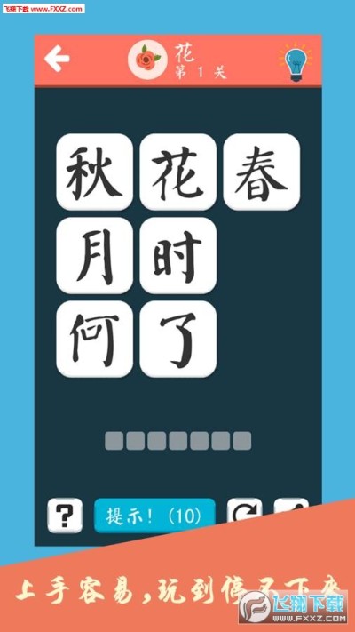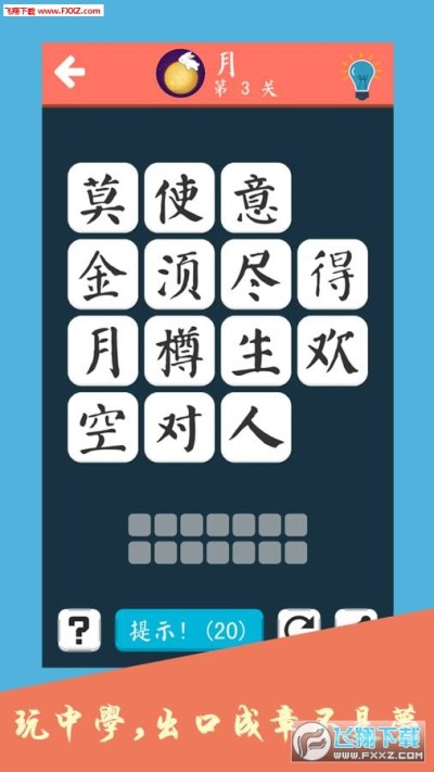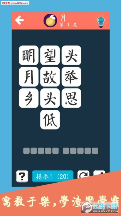 诗词大会飞花令app是一款将中国传统文化一起打造的手机益智游戏,这款游戏以最近大火的综艺《中国诗词大会》为蓝本打造的游戏,这款游戏也是通过字来猜各种诗词,寓教于乐,非常有趣,快来试试诗词大会飞花令游戏,也许你也是一个才子哦!