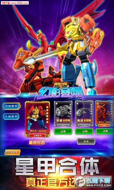 收集基础星甲,组合终极金刚;用户在收集足够的星甲战士之后,特定的组合,可以合体为对应的最强星甲:战神星甲与斗神星甲。6大合体金刚全部上线,纵横战场不是梦想。