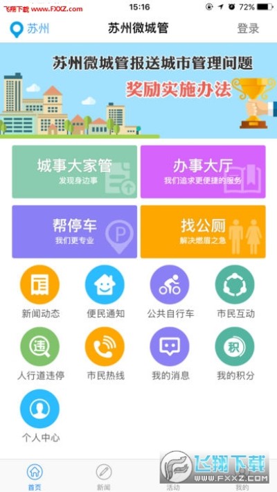 苏州微城管app是苏州城管推出的一款手机应用软件,市民通过苏州微城管app可以更方便的参与到城市建设中来,有找城管、帮停车、找公厕等等,各种大小事件都可以在这里进行,还可以对不文明的现象进行举报,感兴趣的朋友赶紧来试试吧。