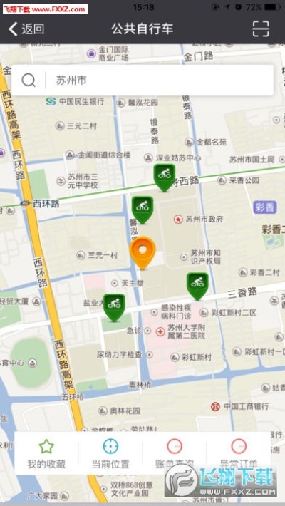 通过“公共自行车”,市民可方便地查找周边的公共自行车租赁点,引导市民绿色出行;