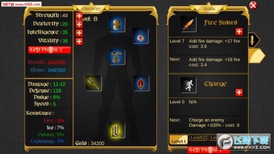 在游戏中,杀死骷髅,僵尸和其他怪物,为您探索地牢。您将获得经验为每杀,有时候,敌人会掉落物品。当你的水平了,你可以升级你的力量,敏捷,智力,活力,和法术。用更好的武器和装甲装备自己增加你的攻击/伤害和防御。