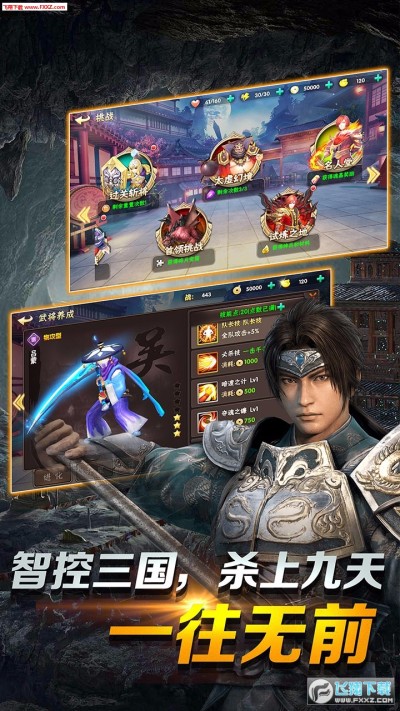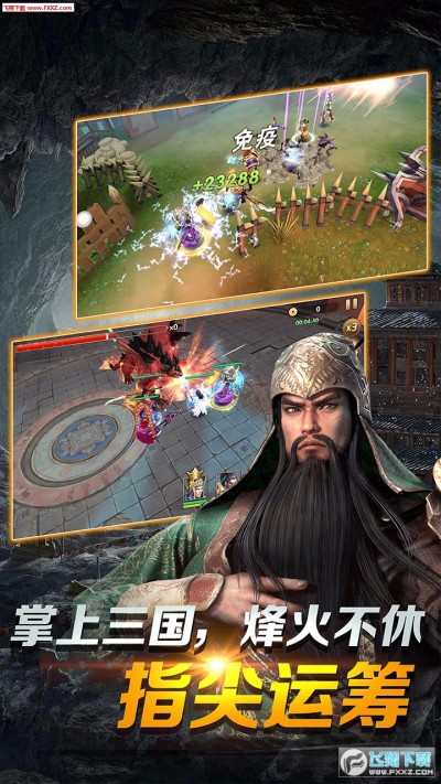 三国题材,精美画面,高还原度场景,3D建模,让你身临其境感受真三国!多种日常竞技挑战,紧张刺激(BOSS战)、快速养成角色(过关斩将)、全服混战PK(国王争夺战)、王城争夺成王败寇(阵营战) 深度养成:武将的多维成长,武将收集、进化、升星、缘分、培养、装备;独创全阵营武将培养,所有武将可持续培养(没有废将); 玩法商店:各类特色玩法商店,稀缺道具兑换,免费养成,自由成长