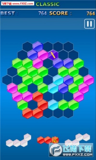 玩法很简单,拖动最下方的三个由六边形组成的积木块,放在上方的地图上,只要在地图上任意一个方向的格子被宝石填满了,就能消除它!积木块不能被旋转,而且有多种道具为你的游戏增加挑战和乐趣。