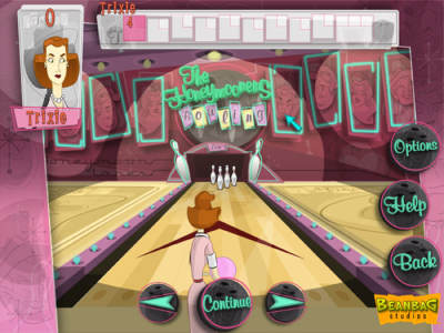 《蜜月保龄球》是Beanbag Studios制作的一款2D卡通风格的保龄球游戏。游戏中玩家可以选择两对正在度蜜月的夫妇中的一人或者多人来进行比赛。