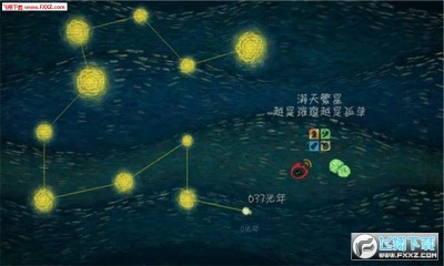 很唯美的游戏,游戏内容是点击白光使它到达黄星星,中间相距的距离是光年,总共光年就是你的成绩,玩家一共有三次机会,每次结束后都会有一句话。画面像梵高的油画,音乐很美很契合气氛。感觉像是作者思念另一个死去的人,因为据说人死去灵魂会变成星星,所以游戏里面说“你在我永远到不了的地方”“满天繁星,越是璀璨越是孤单”