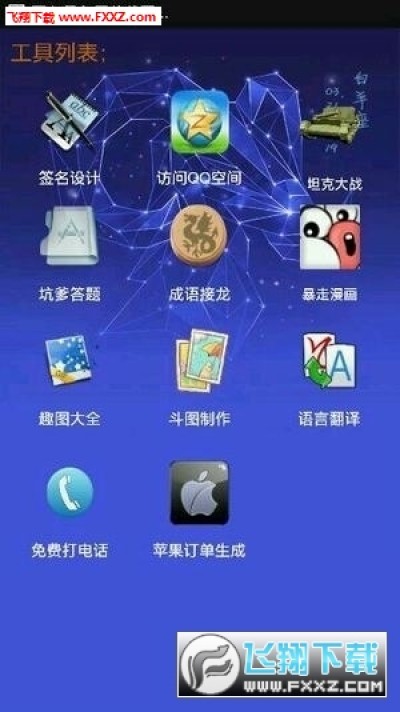 2、网络技术学习、带刺字体制作、菊花文生成、人品测试、自定义说说尾巴、查询话费流泪、生成二维码、生成竖立网名、生成特殊网名、网盘神偷、特殊符号、聊天机器人、路由地址获取