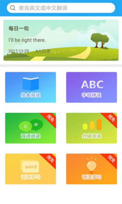 【进阶】提供绘本阅读、字母拼读、双语阅读、分级阅读、词汇学习、语法学习、名师微课堂等专项内容帮助学生提升英语学习水平。