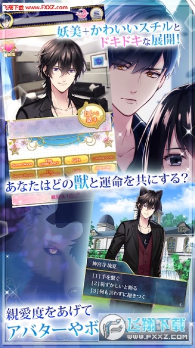 当心大野狼中文版》是一款日系乙女恋爱养成手游游戏中玩家需要进入架空的东京内,在吸血鬼和狼人的争夺中做出自己的选择,8名不同个性的美少年角色供玩家的选择,还可以根据不同的角色更换造型,喜欢的玩家快来开始自己的浪漫爱情吧!