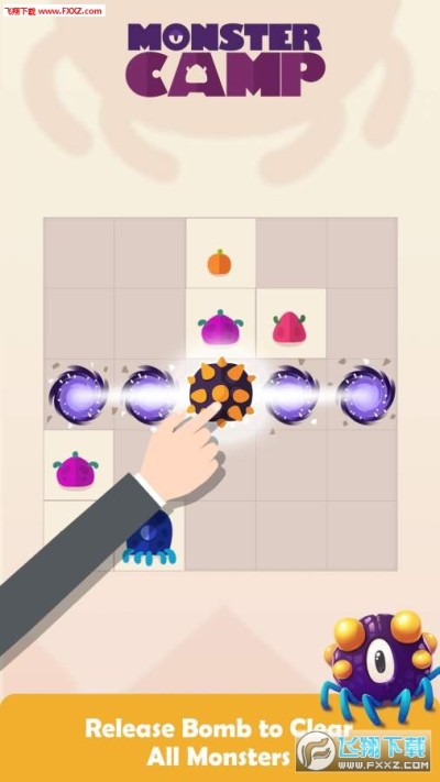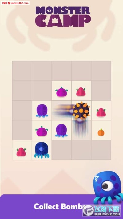 * 三个及以上的小怪物可以合成怪物炸弹道具,消除你不需要的一行,让你获得更高的分数哦!