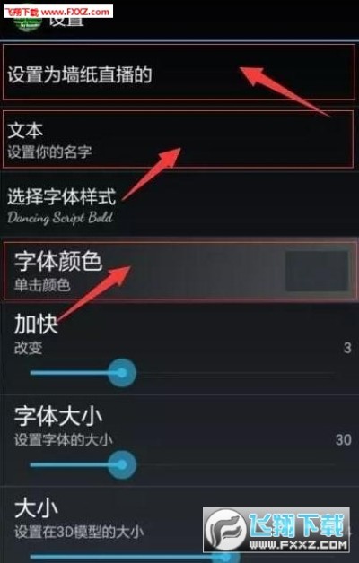 进去配置界面,输入你的姓名,选择姓名颜色,在里面你还可以选择3D模型转动的速度,大小,以及字体的大小,透明度那些
