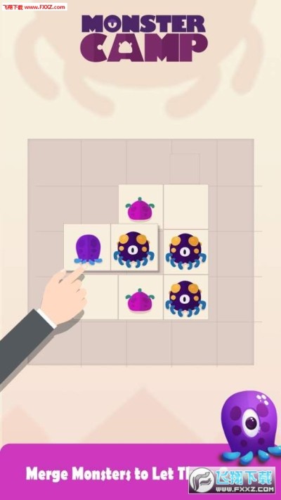 * 拖动出现的元素放置于地图上,三个及以上横竖相连的同种小怪物会合并成长,直至最后合成你的怪物炸弹