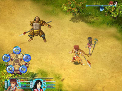 游戏的画面是从多个游戏中选用的素材,以至于画面看起来相当的有违和感,感觉人物就像是走在一张背景的纸上,完全和背景不搭。比较有意思的是游戏引入了气的概念,气变成了一个单独的系统,每个人都拥有自己威力强大而且独特的气技能。