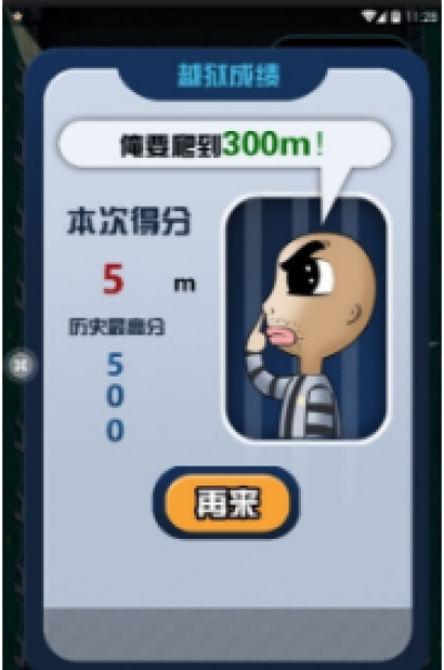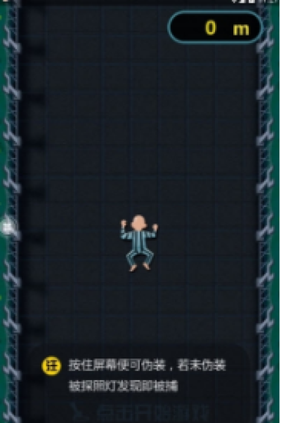 游戏名字叫做越狱爬酷,点击屏幕可以控制主角伪装自己。光头囚犯终于找到越狱的机会了,然而外面还有层层的巡逻等在等着他,他的光头会暴露他的位置,不过他有个伪装地毯能帮助自己躲过探照灯的照射。来试试自己能逃多远。