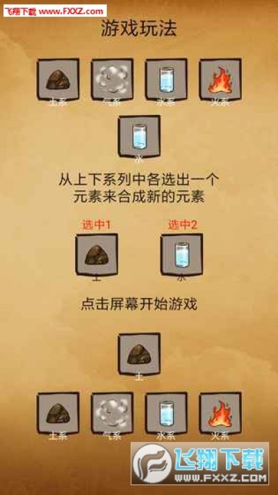 在上下大类中各选择一个元素,然后尽可能的去瞎合成吧,哈哈!