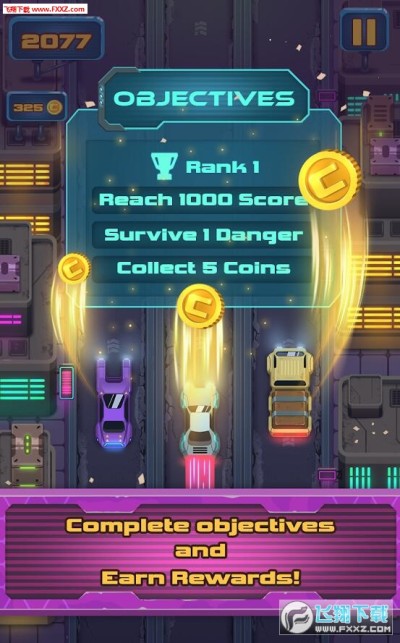 《无人机逃生》是一款街机赛车竞速手游,在这款充满未来感的街机游戏中,时间选择和快速反应是关键。通过停止或加速你的车来逃脱无人机,并解锁特殊的强力道具尽量延长游戏时间!