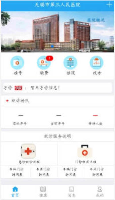 无锡三院app是无锡市第三人民医院官方推出的手机服务客户端,这款软件主要是针对智慧医院建设服务的,下载无锡三院app可以直接在手机上查询自己的健康档案,还有网上预约挂号的功能等等,非常方便,需要的用户快来下载吧!