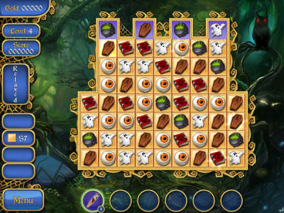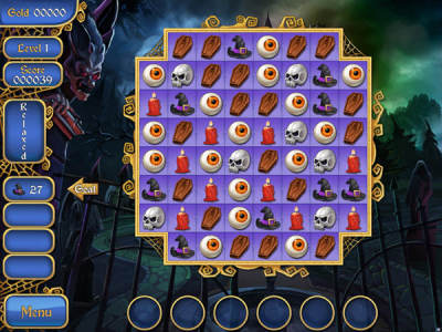 《幽灵赏金》是一款以万圣节幽灵为主题的消除类游戏,游戏采用的是交换消除的经典模式,每一关都会有一个或多个收集任务,如收集某个图案,背景上的方块,以及特殊的骷髅头,完成该任务才能过关。游戏还有一个装饰房屋的小游戏,利用过关奖励的钱购买装饰品。