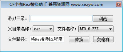 CF小咖Rez替换助手(CF替换REZ文件工具)是一款十分专业的专为CF替换REZ文件辅助设计的免费电脑工具。你是不是在找占空间小的CF替换REZ文件软件?那就来飞翔下载CF小咖Rez替换助手官方版使用。帮助小白和懒人玩家一键进行替换,没有复杂的操作,只需要选中游戏的目录进行替换即可。需要的快来飞翔下载CF小咖Rez替换助手官方版使用吧!