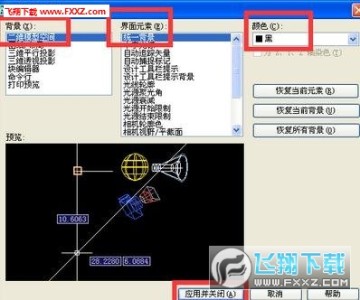 3、选择二维模型空间、统一背景颜色,然后在颜色位置换成需要的,点应用关闭即可。