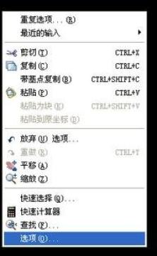 1、绘图区域点鼠标右键,点选项,或者输入命令OP回车。