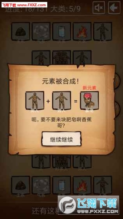 v4.1.0\n游戏引擎更新v4.0.0\n1.给一些角色穿上了衣服……\n2.修改了一些元素的名称……\n3.升级游戏引擎v2.3.0\n更新游戏引擎v2.2.2\n更新广告sdkv2.2.1\n1.包体大小优化\n2.64位系统支持v2.2.0\n优化了一下滚动区域的显示v2.1.0\n游戏开发引擎升级v2.0.1\n修复成就条件bugv2.0.0\n1.新增油,海草,鱼,电子书 多谢@爱音斯坦 提供创意\n2.新增了成就系统\n3.“光”的解锁稍微做了下调整v1.5.9\n新增了盐,二氧化碳,耙,田,庄稼,洋,火山 多谢@真是猛男 提供创意\n新增了抽卡,血统 多谢@千紙鶴 提供创意\n新增了黄河 多谢@Lin.no 提供创意\n新增了细胞,爱情 多谢@屿霄 提供创意\n新增了骰子 多谢@注水的矿工 提供创意\n新增了桑拿 多谢@成仙 提供创意v1.5.7\n新增了大地,石油,塑料,塑料姐妹花,神话,男神,女神,太阳神,海神,火神,冥王,雅典娜,战神,赫拉,宙斯 多谢@詹一美 提供创意v1.5.5\n新增了速度激情,云,雨,伞,森林,交易,歌手,粉丝,酸辣粉,冰山,多谢@真是猛男 提供创意\n新增了蓝精灵,树人,房间,厕所,翔,蓝翔,圆规,沙漏,多谢@小小黄人君 提供创意v1.5.1\n新增了唱片机,音乐,舞蹈,自由 多谢@Figo_sun 提供创意\n新增了衣服,女装,女装大,四大皆空佬 多谢@疯crazy羊 提供创意\n新增了温室 多谢@长夜未央 提供创意\n新增了电机 多谢@qazwww19 提供创意v1.4.9\n新增了女儿国,骨头,白骨精 多谢@一条帅气的鱼 提供创意\n新增了猪八戒,沙和尚 多谢@筱清 提供创意\n新增了更衣室,大保健 多谢@注水的矿工 提供创意\n新增了猫奴,肌肉男 多谢@vvvv 提供创意\n新增了羞羞的片 多谢@剪不断。理还乱。是离愁 提供创意v1.4.7\n新增了丧尸,生化危机 多谢@NG南 提供创意\n新增了世界大战,世界末日 多谢@。_。 提供创意\n新增了灯泡,小三 多谢@微信好友 提供创意\n新增了伐木工,熊 多谢@头上几根毛 提供创意\n新增了课本,成绩单,竹笋炒肉 多谢@陌说花殇 提供创意v1.4.5\n新增了笔,痣,智障 多谢@猴子 提供创意\n新增了球,足球,世界杯,麦克风 多谢@脑洞深渊 提供创意\n新增了