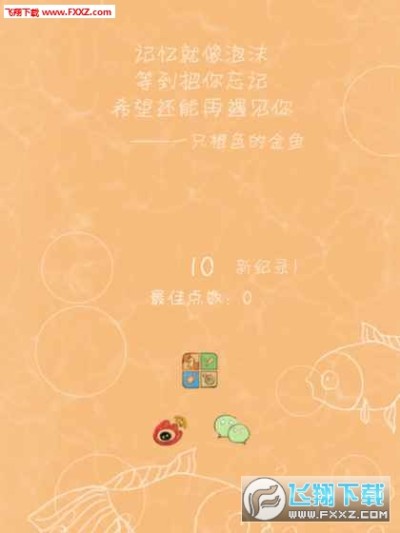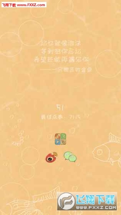 游戏是以金鱼的记忆为主角。用不断变换的橙黄色做背景色为我们氤氲出金鱼那浅浅的梦境。梦境里有气泡,有记忆碎片,还有时隐时现的金鱼轮廓,因为画面比较简单,看起来并不是十分精致,却别有一番奇妙滋味。玩的时候,玩家需要点击那些相互交错的泡泡,让它们合为一体变成大的泡泡来框住那些四处飘散的回忆碎片。需要注意的是这些泡泡所能存在的时间只有 7 秒,所以玩家玩时可务必要把握好时机,才能尽可能在有限的时间内框到足够多的记忆碎片来获取多多的分数,延续时长向更高分冲刺。