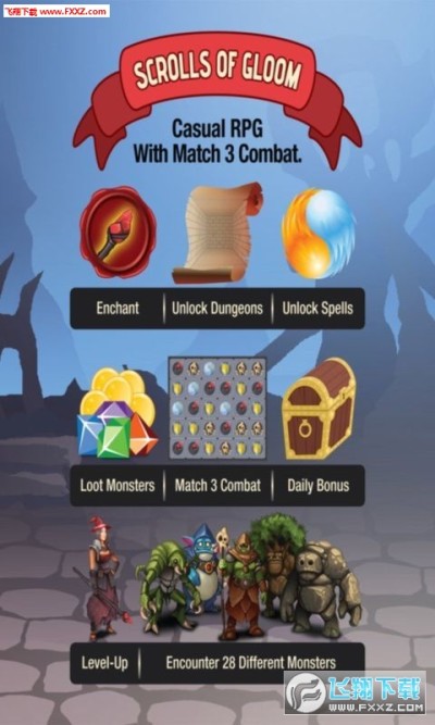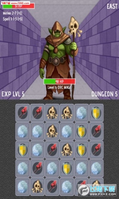 匹配法术或武器瓦片伤害怪物。匹配的头骨瓷砖会损坏你。当你探索地牢的时候,你可以看到一个迷你地图,你可以参考它来帮助你导航地牢。今天就开始你的冒险之旅吧!