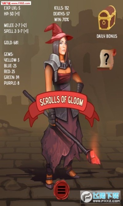 你是一个无所畏惧的女巫,他发现了隐藏了几个世纪的魔咒。卷轴可以把你带到秘密地牢里,在那里你可以和游荡的怪物战斗并获得战利品。探索地下城,对抗游荡的怪物和收集战利品。使用你掠夺的金子和宝石来提升你的品质。找到每个地牢的钥匙,打开下一个魔法地牢门的卷轴。
