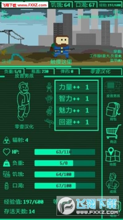 《口袋辐射中文版》是一款像素风格的冒险生存类手游,游戏将在世界末日充满核辐射的环境中,玩家需要在残破的城市中收集资源,制作各种工具和装备打造基地,不断探索强化自己的角色,在末日世界中生存下来,喜欢的玩家可以下载试试哦!