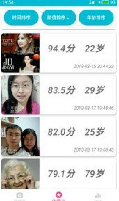 4、您可以将心仪的照片保存到收藏夹中,对收藏夹中的照片按照年龄、颜值进行排序,找出颜值王。