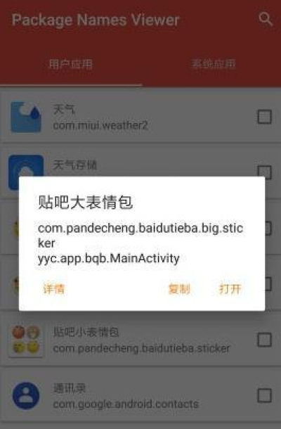这个应用程序显示在您的设备包名和发射器类中的所有应用程序。