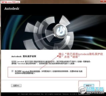 在AUTODESK 隐私声明中我们选择我同意隐私声明,然后点击右下角的继续按钮。 如图一十五。