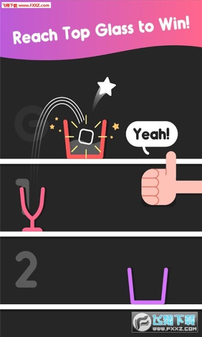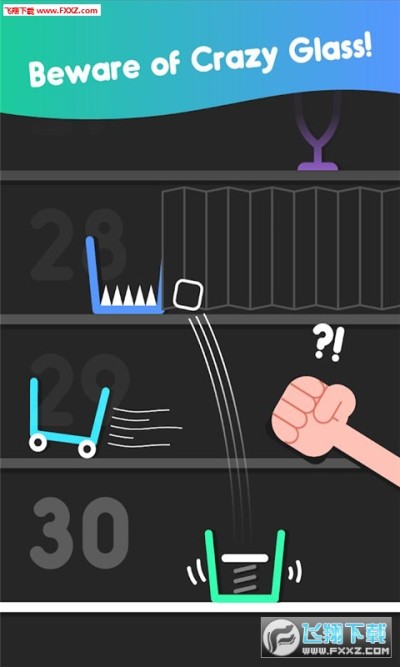 《Glass》是一款需要把握时机的休闲游戏,你需要将一个杯子里的冰块跑起来调到更高处的杯子中,只有短短的瞬间,抓住两个杯子重合的瞬间来将冰块转移。