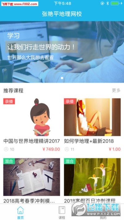 第三步:如果直播课程,在直播之前会有短信通知上课时间,待上课时,点击进入课堂即可。在有Wi-Fi的情况下,可以点击学校链接直接进入学校观看,也可以下载“张艳平地理”app观看。若要缓存下载,则需要下载“张艳平地理”app,进行课程缓存即可在没有网络的情况下观看。如果手机观看,则请让手机可以横屏幕,最大化观看。