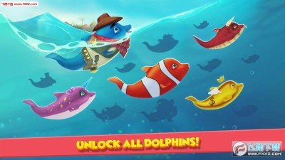 游戏中有丰富多样的关卡,开启梦幻般的海洋冒险,还可以解锁更多可爱的海豚角色!