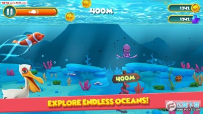 3、但是玩家你必须要注意躲避章鱼,并且尽可能多的的获得红心和金币,还有各种道具可以帮助你获得更高的分数。