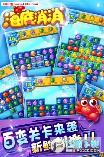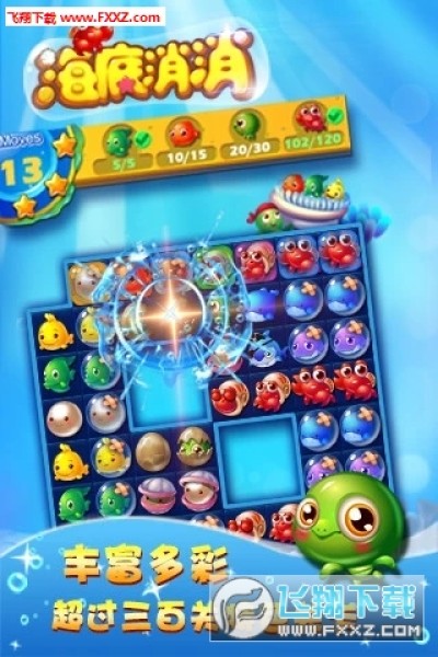 这款消消乐游戏轻松休闲,设定海洋背景,跟其他消消乐相比有不同的特效声效,可以尝试
