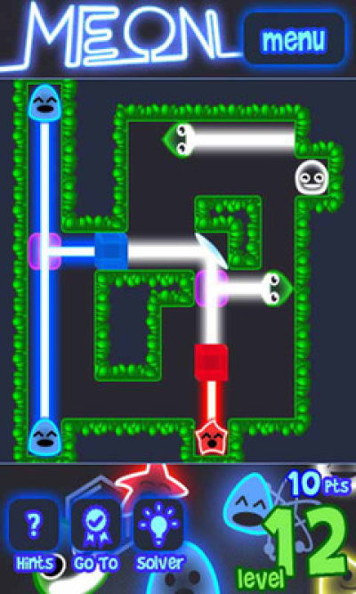 《Meon》这款游戏的题材其实是很经典的——光线反射。而《Meon》也凭借着android平台的特性,向用户展现出了更好的眩光效果画面、更多的谜题组合。看着自己用棱镜、属性透镜、折光器等工具,把那些Meon给全部激活起来,还是令人很有满足感的。不过当卡在某个地方的时候,也是着实让人无比心急。不过所幸的是游戏的配乐风格比较多变,轻松、活泼和舒缓的类型都会有,能够一定程度的缓解被谜题卡住时的焦躁。