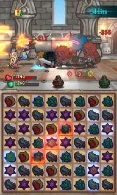 透过三消规则,满足条件施放技能,进行连击、防御、回复,充分体验横版动作游戏的乐趣。