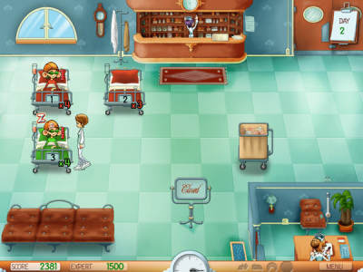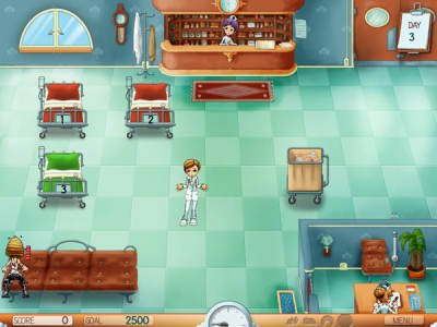病人会刷出在等待区,你需要将病人放入诊断室诊断,诊断过后放到病床上休息,期间病人会发病,需要你指派医生前往探查,然后要放开药,吃药后病人差不多就会痊愈,有些病人可能会出现反复,这时候重复探查和开药吃药就能痊愈。病人痊愈后将病床整理好即可。游戏中病人和病床是有颜色的,把病人安排到对饮个颜色的床上会有累加点数,保持到关卡结束能获得更多的分数。病人的心情会随着等待时间下降,下降太多就不会付钱,而心情好会多给钱。