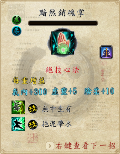 归元武学是增加主动技的伤害,同样要装备内功才能生效。