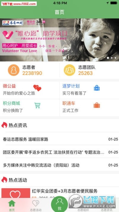 “志愿四川”平台是国内首家以志愿活动o2o为核心,集志愿活动、志愿工作管理、志愿服务时长记录、志愿者就业、创业、社交、生活服务于一体的一站式成长服务平台!
