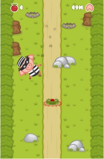 蠕动的猪是一款动作类型的冒险游戏,这个游戏呢看起来还是挺好玩的,主角是一只萌萌哒的小猪,不过这个萌萌哒的小猪它不会跑,只会慢慢的蠕动,所以这就成了大灰狼眼中的晚餐,所以大灰狼准备趁这只小猪不注意的时候开始猎杀它,小猪发现了之后,想抓紧时间逃离大灰狼的追捕,可是只能蠕动的它跑不动啊!