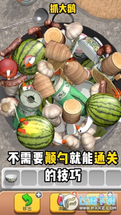 抓大鹅无广告版是一款非常有趣的消除类游戏。玩家需要帮助一只魔性大鹅通过消除相同图案的方块来过关。游戏在经典的三消玩法基础上进行了一些创新,通过点击的方式将相同图案的方块放入凹槽里,直到所有的方块消失即为过关。随着关卡的提升,难度逐渐加大,需要玩家更加仔细地观察和思考。